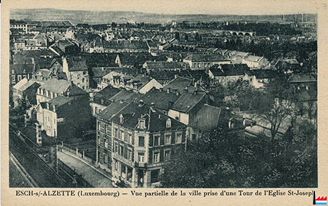Esch/Alzette- vue partielle de la ville prise d'une Tour de l'Eglise St-Joseph (Carte postale: Edition de l'Agence Eug. Wengler, Esch/Alzette; Collection: industrie.lu)