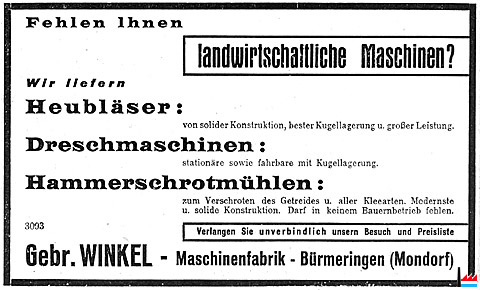 | 1948/49 | Winkel frères, Bürmeringen menuiserie, machines agricoles, meubles |