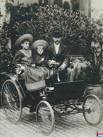 Paul Wurth au "volant" avec, à ses côtés, sa fille Miquette (future épouse de Norbert Metz) et sa nièce Maisy Wolff (future Madame Emmanuel Servais). Pour monter la côte d'Eich, Wurth devait descendre de voiture, la 1 1/2 CV ayant toute peine au monde à charrier les deux files; il va sans dire que le propriétaire du « toeff-toeff » pouvait aisément marcher à côté de sa voiture. (Mersch Jules, BNL, XVe fasc., 1968, page 366. - Paul Wurth - L'homme privé.- Reproduction photographique: Archives Camille Aschman)