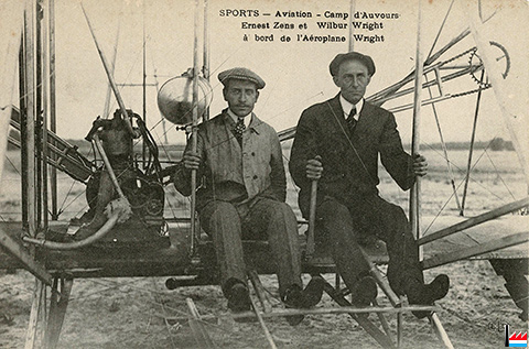 | 1908 | Paul Zens et Ernest Zens, les deux plus jeunes fils de notre compatriote l’ancien directeur, aujourd’hui président du Conseil d’administration des chemins de fer départementaux comme ingénieurs au service de Wilbur Wright. C’est en qualité de sportsmen enthousiastes de la locomotion nouvelle qu’ils sont allés s’installer au Mans pour suivre de près les expériences de l’aéroplane Wright. Le plus jeune, M. Ernest Zens a déjà participé, il y a deux ans, à la Coupe Gordon-Bennett pour ballons sphériques. Quelques mois plus tard il représenta l’Aéro Club d'Espagne, dont il est délégué, au Congrès d'aérostation de Berlin. Propriétaire de ballons, il est un des membres les plus actifs de l’Aéro-Club de France. En sa qualité de membre de la commission d’aviation, Ernest Zens est un des trois officiels qui contrôlent et enregistrent pour l’A.C.F. les records de Wilbur Wright au camp d’Auvours. (LIL: 26.9.1908) |