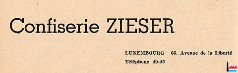 | 1948/49 | Confiserie Zieser 66 avenue de la Liberté Luxembourg Tél.: 49-45 |