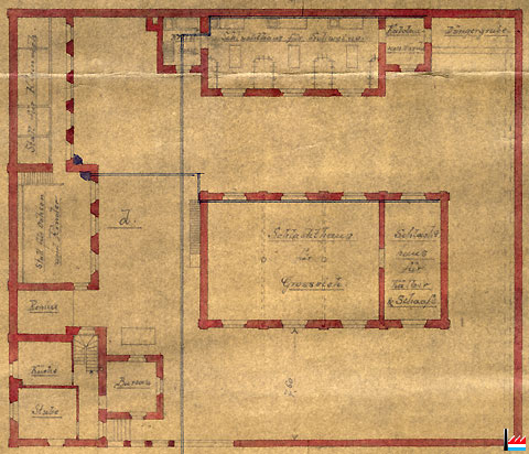 | Stall für Ochsen und Rinder | Schlachthaus für Großvieh | Schlachthaus für Kälber und Schafe | |
