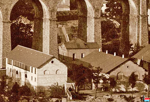 Abattoir - Schlachthof Pfaffenthal - Schluechthaus Paffendall, rue du Fort Olizy - 9.6.1892 - Viaduc de Pfaffenthal de la Ligne du Nord (Collection: industrie.lu)