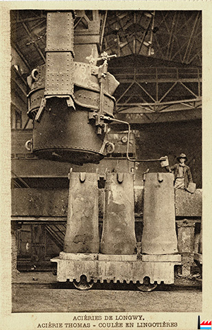 Aciéries de Longwy - Aciérie Thomas - coulée en lingotières (Carte