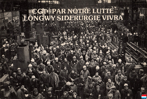 CGT - Par notre lutte Longwy Sidérurgie vivra - Usinor Longwy - Atelier central - rencontre avec Henri Krasucki