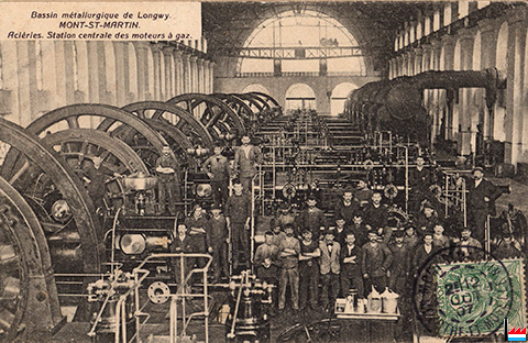 Aciéries de Longwy - Un des moteurs à gaz de 6.000 CV (Carte