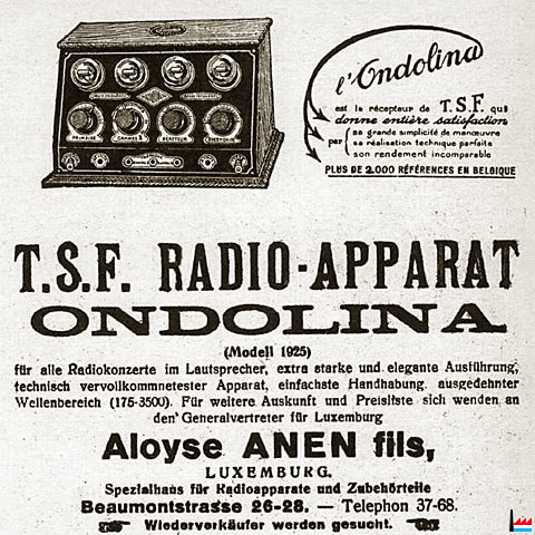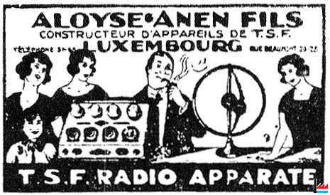 | 11.5.1929 | Constitution de la Société Luxembourgeoise d'Etudes Radiophoniques - S.L.E.R., par François Anen, Henry Etienne (éditeur) et Jean Le Duc (Compagnie pour la Fabrication des Compteurs) | ||