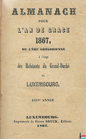 ALMANACH POUR L'AN DE GRACE 1867 ŕl'usage des Habitants du Grand-Duché de Luxembourg 101e année |