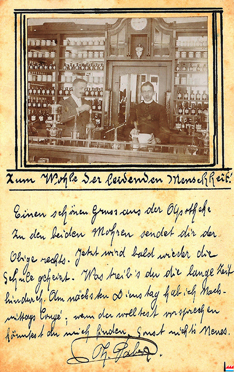 Apdikt - Apotheke "Zu den beiden Mohren" - Karte mit Poststempel vom 10.9.1909 (Collection: Marcel Schlim)