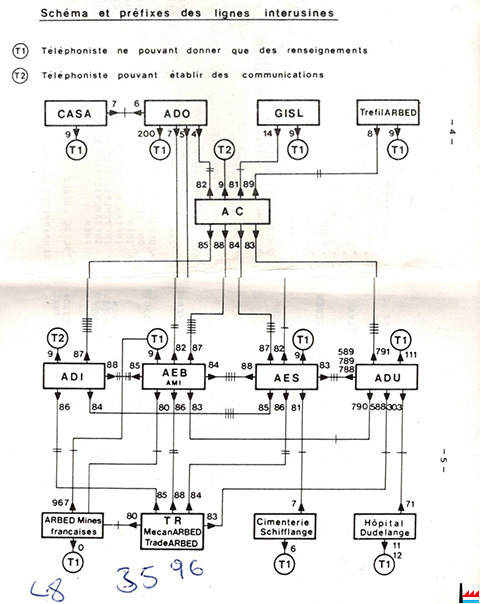 ARBED - Réseau téléphonique inter-usines |