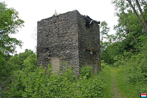 et restes des murs de l'atelier des fendeurs (Schacht und Spalthaus) des Ardoisières