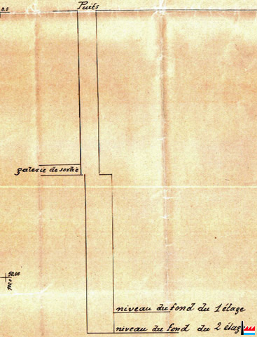 | 1911 | 4 hectares 44 ares en toute propriété et 1 hectare 9 ares en tréfonds Puits: 75 m de profondeur sur 2 étages: à 56 et à 61 m de profondeur Couche ardoisière bien homogène, très fossile, inclinée de 47° du Sud vers le Nord, épaisse d'environ 250 m |