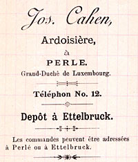 Ardoisière (Cahen) Kahn & Cie - 1891 - Bourgweg / Im Steinberg, Perlé (Document: ANLux)