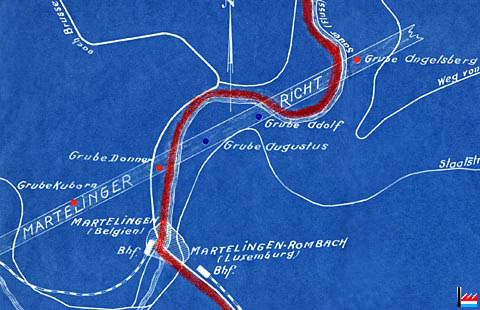 | Projet d'extension vers le Grand-Duché de Luxembourg en cours avec, pour finalité, de rejoindre les ardoisières de Rombach, de l'autre côté de la frontière, en cessation d'activités depuis 1986 et dont l'entreprise belge a obtenu la concession. Des travaux préparatoires de creusement d'une galerie d'accès sont entamés dans la zone intermédiaire de 200 mètres entre les deux exploitations. Cette extension permettrait d'augmenter de 2 à 3 fois la capacité de production. (Le Soir: 12.7.1990) |