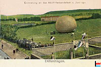 | 12.6.1911 | Le ballon "Le Rêve" de l'aéronaute bruxellois Lèon Gheude décolla de Differdange, à midi. D'autres montgolfières montèrent dans les airs. | |||||||