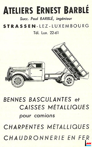 1949 | Imprimeries Bourg-Bourger et Hermann à Luxembourg | Publicité Ateliers Ernest Barblé |