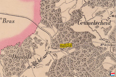 ![]() Doncols - Barrière - Grümelscheid (Carte Jean-Baptiste Liesch - 1862) |