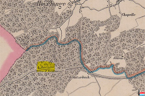 ![]() Barrière Beidweiler (Carte Jean-Baptiste Liesch - 1862) |