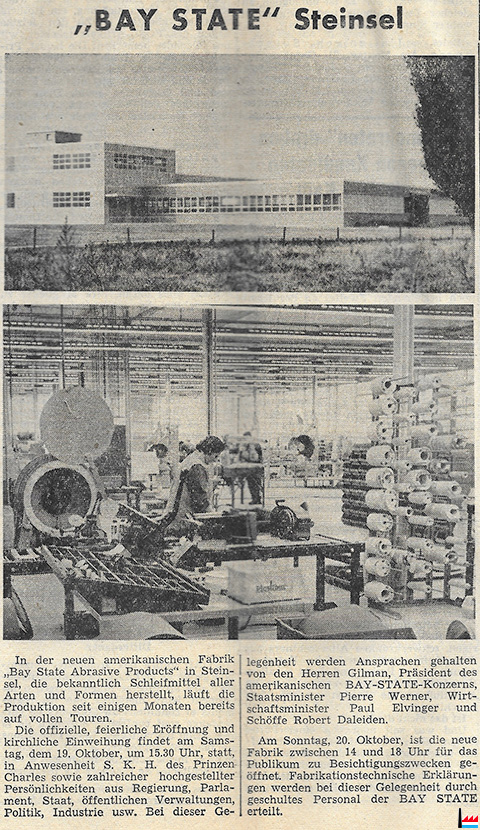 | 15.9.1961 | Fondation - Gründung : par Bay State Abrasives, Westboro, Worcester County, Massachusetts, USA Capital: 25.000.000 LUF |