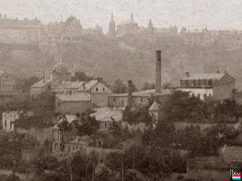 Usine au Plateau Altmünster vers 1909, en bas des bâtiments de la Brasserie Mousel (Collection: industrie.lu)