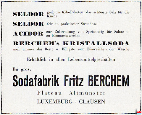 Sodafabrik Fritz Berchem - Werbung von 1954 in FC Mansfeldia 1919 Clausen 35e anniversaire - 1954 (Collection: industrie.lu)