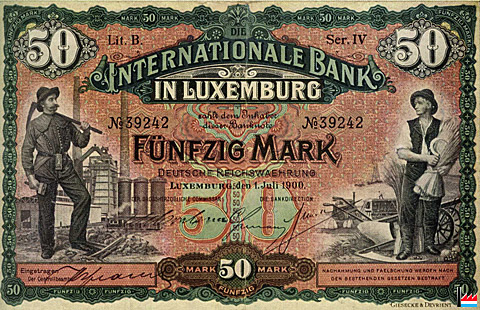 Internationale Bank in Luxemburg 20 Mark Deutsche Reichswährung Luxemburg, den 1.7.1900 |