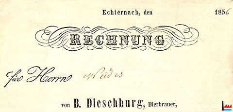 | 1856 | Rechnung von B. Dieschbourg, Bierbrauer, Echternach |