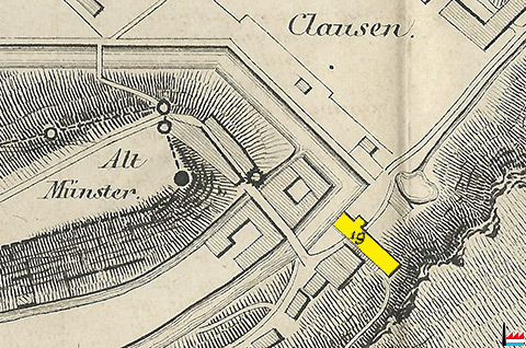 Plan montrant la situation de 1824 (dans: Centenaire de la Fanfare Grand-Ducale de Clausen - 1951):