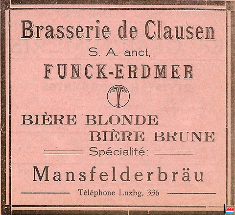 | 25.8.1920 | Constitution: Brasserie de Clausen S.A. Capital: 700.000 LUF |