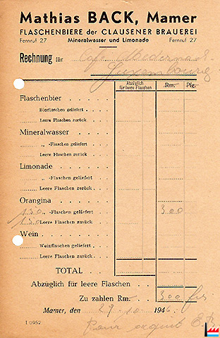 Rechnung von Mathias BACK, Mamer - 1946 (Collection: industrie.lu)