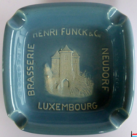 Cendrier publicitaire Brasserie Henri Funck & Cie, Neudorf, Luxembourg, fabriqué par Villeroy & Boch, Luxembourg (Collection : Philippe Aschman)