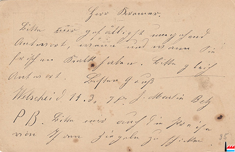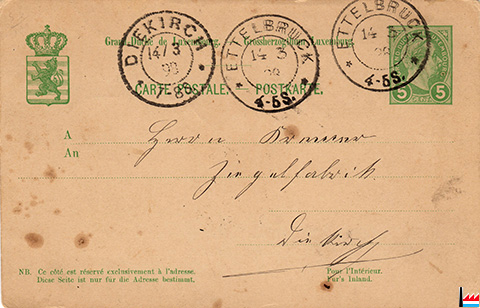 Postkarte an Michel Kremer, Ziegelfabrikant in Diekirch - 18.4.1898