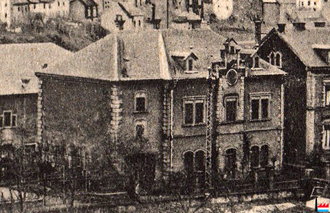 Ancienne maison de Thomas Byrne, 64 rue des Martyrs (56 rue de la Gare), Rumelange- vers 1907 (Extrait de la Carte