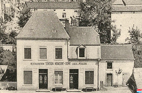 Das neue Hotel in Altlinster (32 Fenster, 2 Stockwerke, wenigstens 20 Zimmer) soll als Café de la Station und zugleich als Stationsgebäude der neuen Bahn Junglinster - Fels dienen. (LBZ: 15.10.1910)