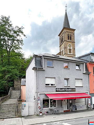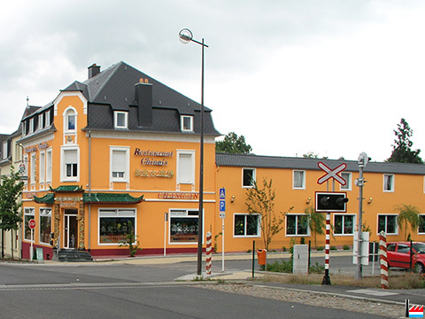 Als Café de la Station und zugleich als Stationsgebäude Altlinster vorgesehen (Photos: 5.5.2022 jmo) Eck Schleifmillen / CR130): www.google.com/maps/@49.7220883,6.2179655,3a,63.2y,75.64h,90.74t/data=!3m6!1e1!3m4!1sNGjBPd7cth8zG8Fl3gJ3kQ!2e0!7i13312!8i6656