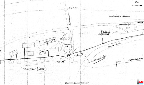 Plang vum Wunnlager bei Stolzebuerg (Ënnerbecken). Vun desem Wunnlager stin haut nach 2 Baracken, déi als Lager benotzt gin. De Rescht ass ofgerappt gin. (fz 2016)
