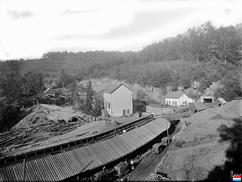 - au fond devant la Maison Schneider le petit quai de transbordement de la minette calcaire des wagonnets lux. 700 mm dans