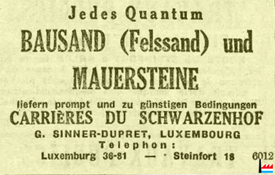 | <=1942 | Steinbruch Schwarzenhof Elvinger Peter, Betriebsleiter, tél: 18 |