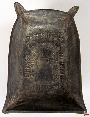 Cendrier en fonte en forme de sac de scories Thomas (14,3 x 9,8 x 2,5 cm; 420 gr.) (Collection Charles-Louis Aschman) |