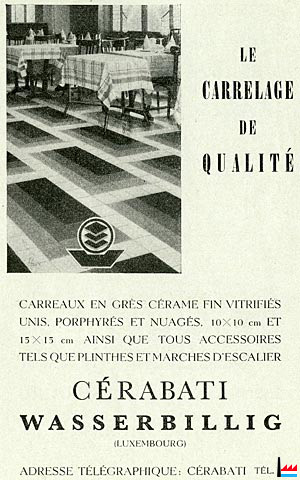 | 1940-44 | Umbenennung in "CERABATI - Allgemeine Gesellschaft für Baukeramik A.G, Wasserbillig" Ruf 4 A. Kill, Verwaltungsleiter |