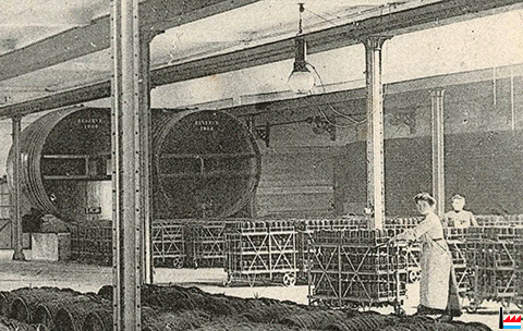 Etablissement E. Mercier & Cie - Succursale de Luxembourg: Hall de la mise en bouteilles -vers 1908 (Carte postale: Collection: industrie.lu)