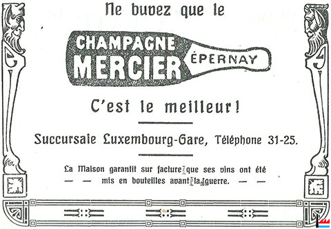 Outre la célèbre fabrique de champagne Mercier, nous avons trouvé des références à d'autres fabriques françaises de champagne au Luxembourg :