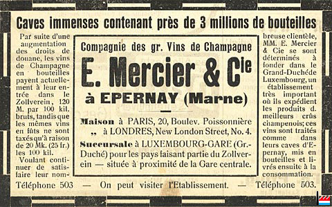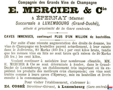 E. Mercier & Cie - Succursale à Luxembourg-Gare pour les pays faisant partie du Zollverein