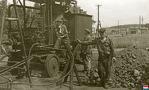 Teerherstellung aus Shell - Goudron, zur Vergrößerung des Flughafen Findel, hinter dem Bahnhof Oetringen (Photo: 28.7.1955 Pol Aschman; Copyright: