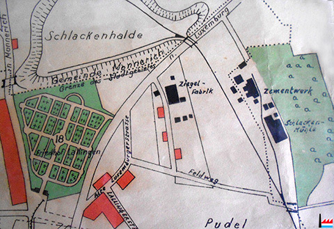 Schlackenhalde - Ziegelfabrik Caffaro - Zementwerk - Schlackenmühle, Esch (Plan von 1940-1945; collection: