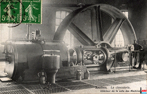 Saulnes - Cimenterie: intérieur de la salle des machines - vers 1914 (Carte postale: Série C N° 59 Edition Artistique V. Kremer Longwy-Haut; collection: jmo)