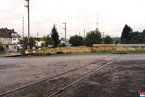 Gare Bascharage - Sanem, au milieu la voie de l'embranchement "Clipper" (Photo: 1993 Marcel Schlim)