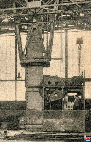 Erster 600pferdiger Gichtgasmotor erbaut durch die Firma Cockerill für das Differdinger Werk. (Das Bild zeigt den Motor auf der Versuchsbank in Seraing.)