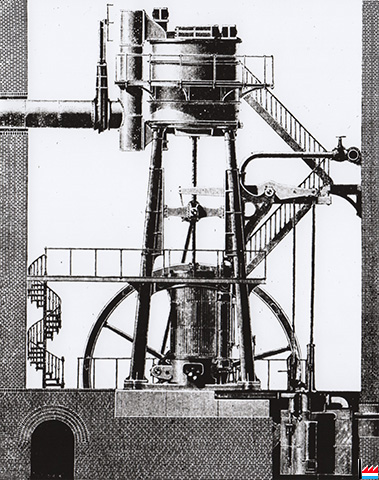 Machine soufflante Cockerill - modèle de 1853, installée à l'Usine d'Eich vers 1858 pour desservir le fourneau n° 3. Puissance: 20 cv.