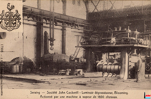 Cockerill, Seraing - Laminoir dégrossisseur, Blooming, actionné par une machine à vapeur de 1800 chevaux (Carte